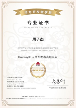 1.2024年4月,获HarmonyOS应用开发者高级认证