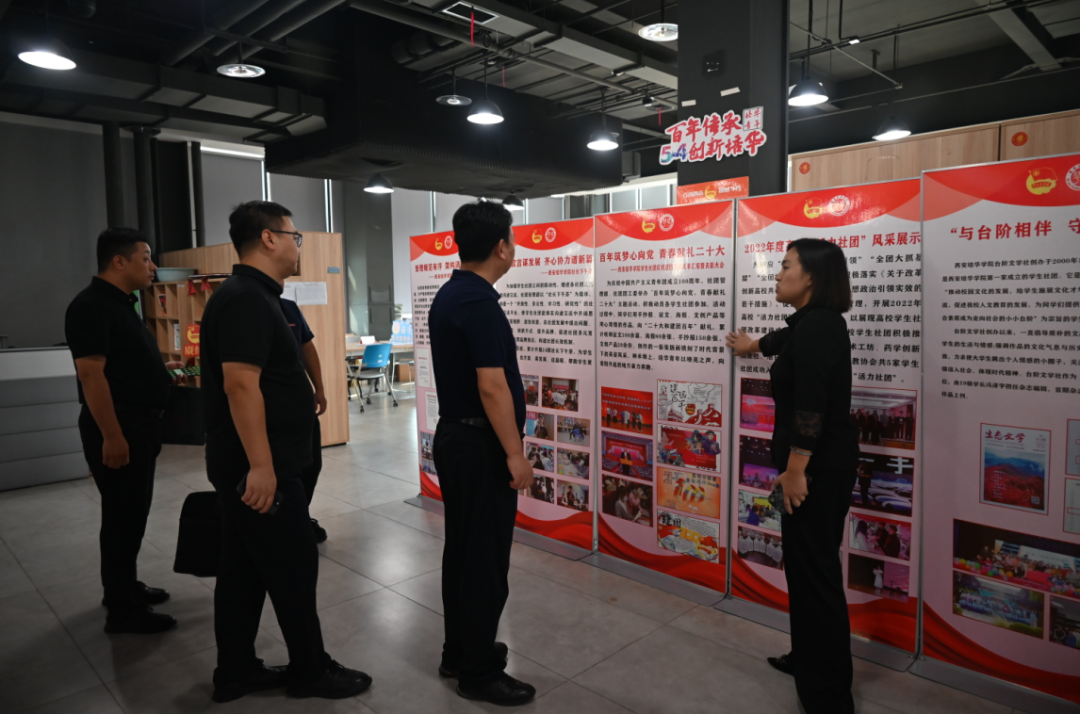 ▲ 来宾一行参观学生服务中心、潜能发展中心及团学组织阵地