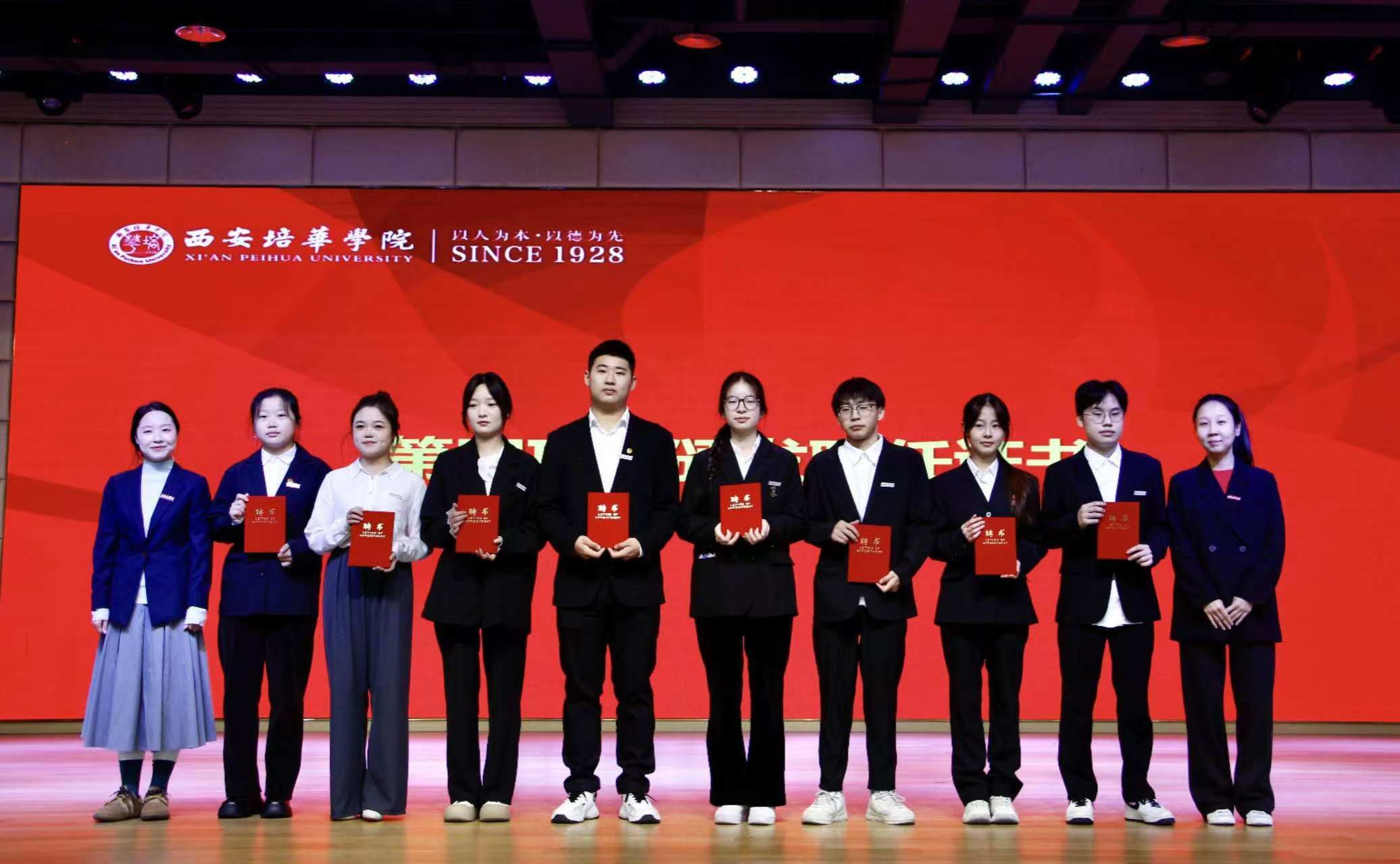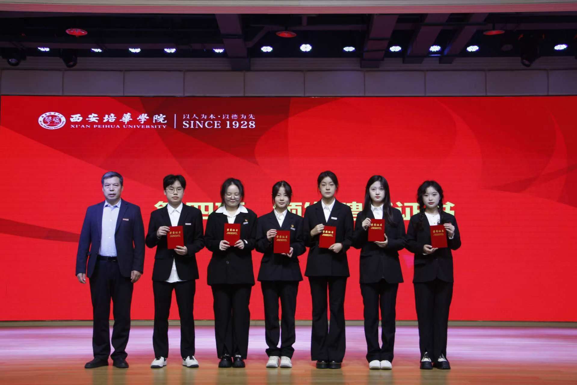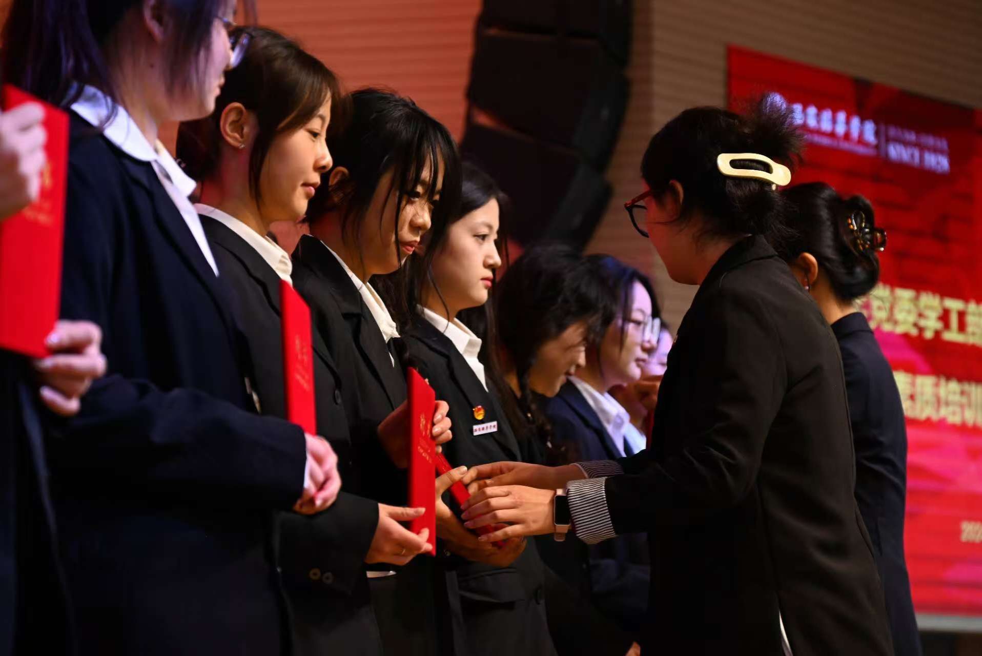 (校团委书记董莹老师、学生服务中心邱含雪老师为主席团成员颁发优秀学生干部荣誉证书及聘书)
