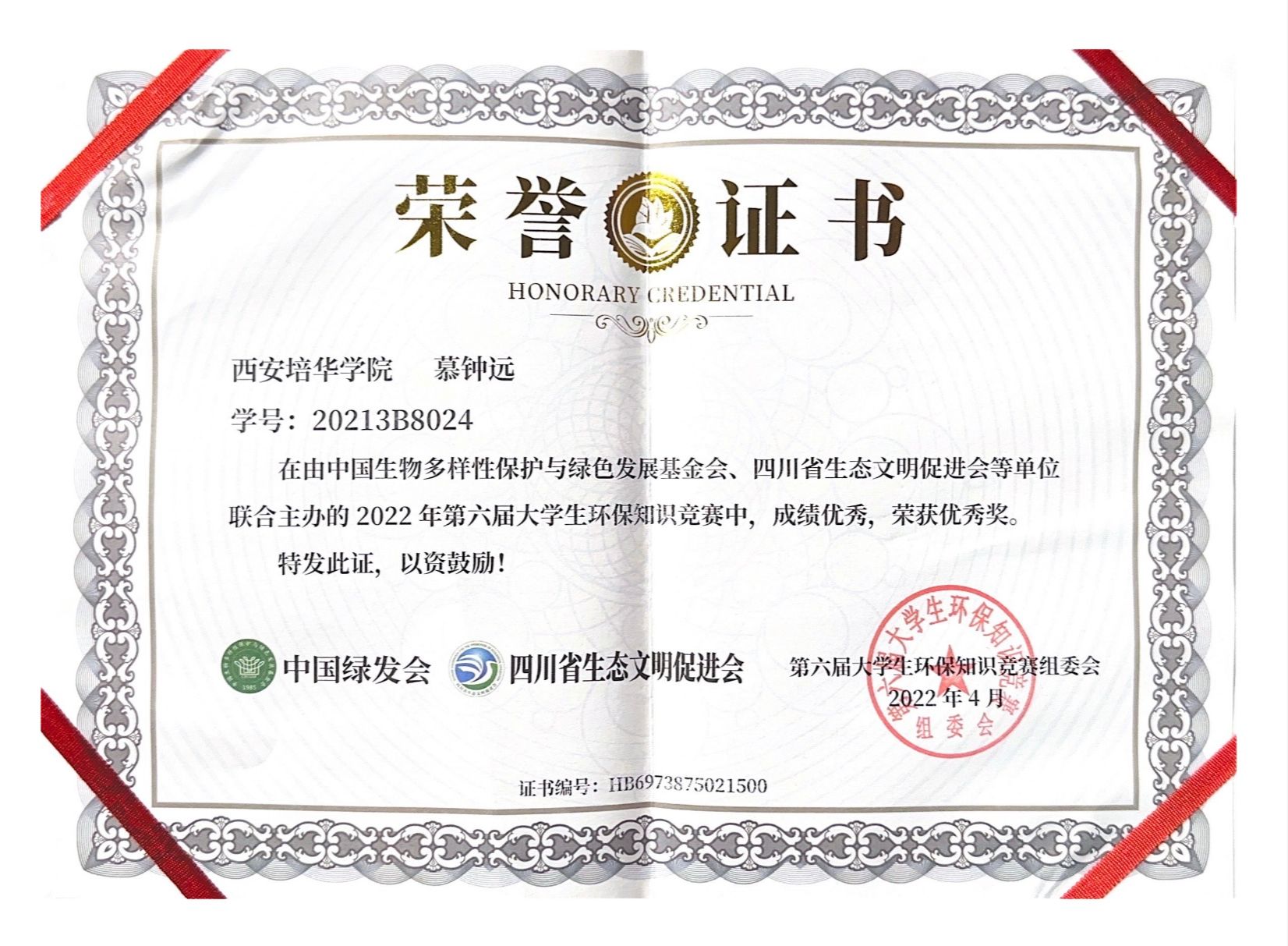 15.2022年4月获得第六届大学生环保知识竞赛优秀奖。