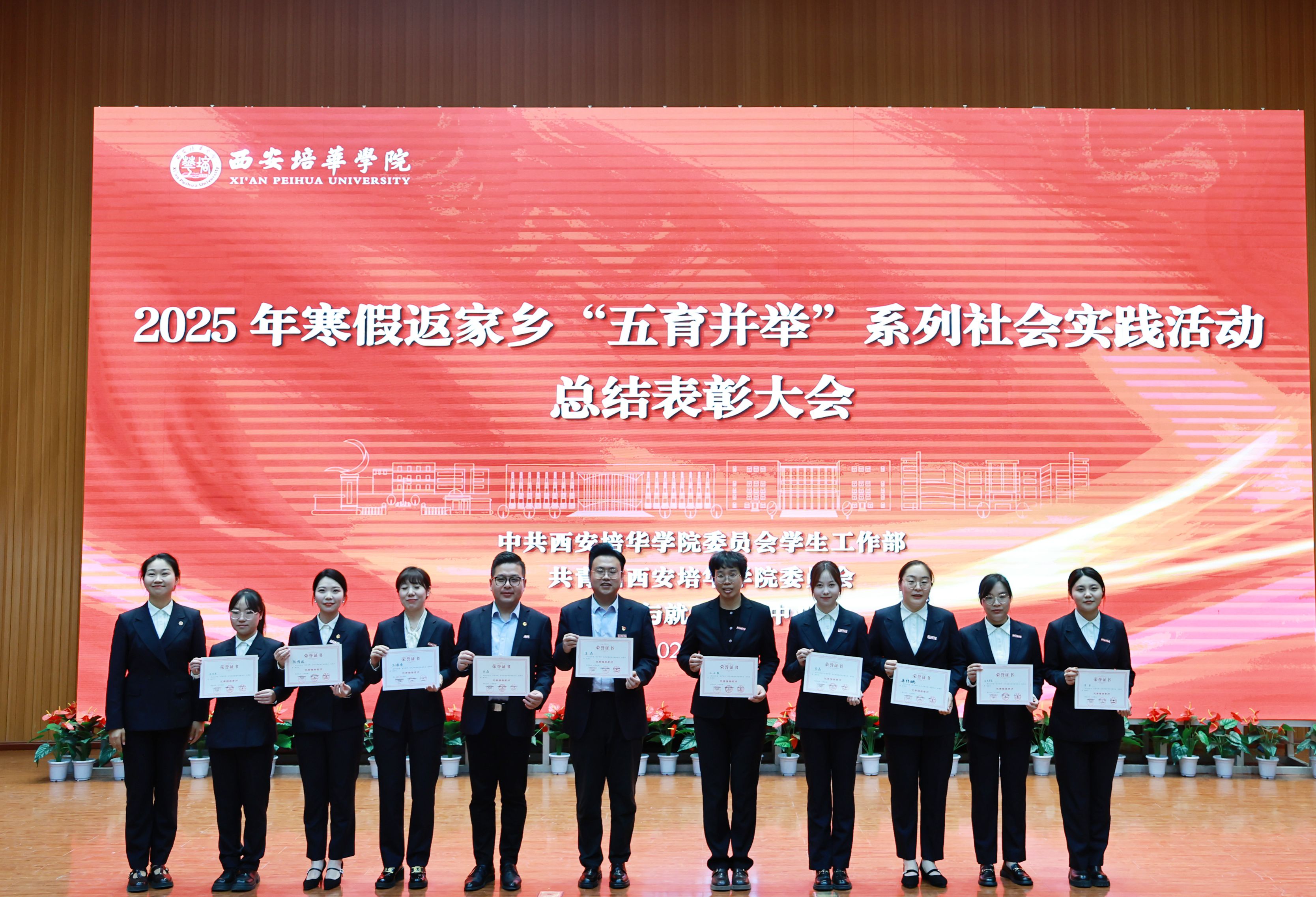 校团委书记董莹老师宣读《西安培华学院关于表彰2025年寒假“五育并举”返家乡系列社会实践活动优秀组织单位、示范(标兵)团队、优秀指导教师、先进个人的通报》
