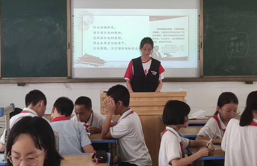 为了传承红色精神,帮助孩子树立正确的三观,实践队员开展了“走近红色文化,传承革命精神。”的爱心支教活动,通过“读红色经典”、“唱红歌”等方式,鼓励孩子开口朗读红色经典,培养孩子自信心,激发孩子的爱国情怀。在这次活动中,实践队成员以自身行动,将红色精神,红色信念,红色理想传递给下一代。