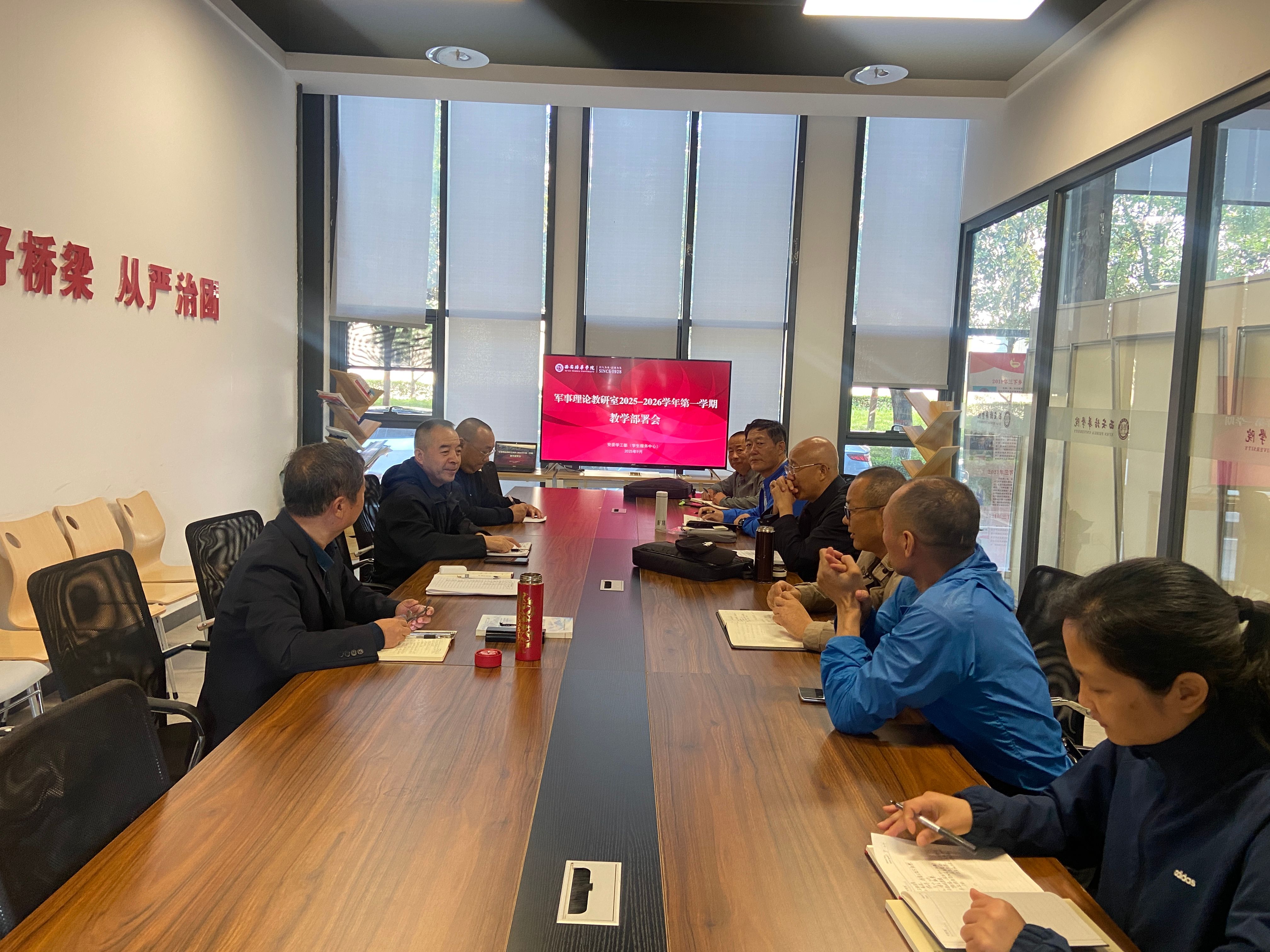 为深入贯彻国家关于普通高等学校军事理论教学的相关要求,切实强化学生国防观念与家国情怀,清晰擘画新学期课程教学目标与实施路径,9月24日,我校军事理论教研室于恒友楼北会议室召开2025-2026学年第一学期教学部署会。教研室主任王宏社副教授、全体任课教师参会,会议由教研室干事惠姣主持。
