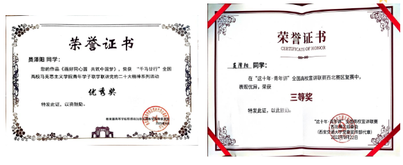 2022年9月,全国高校宣讲联赛西北赛区三等奖;