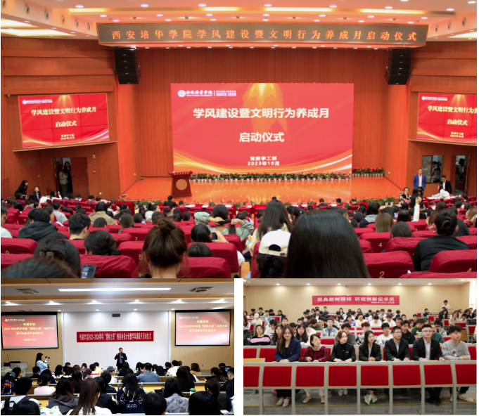 10月17日,我校举行了学风建设暨文明行为养成月启动仪式。党委学工部负责人、二级学院党委(党总支)书记(副书记)、全体辅导员、各学院学生代表参加启动仪式。随后,各学院积极响应,启动学风建设月工作。至此,2023-2024学年秋季学期学风建设暨文明行为养成教育月正式拉开帷幕。