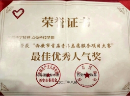 2023年8月,获得西安市首届志愿服务项目大赛“最佳优秀人气奖”