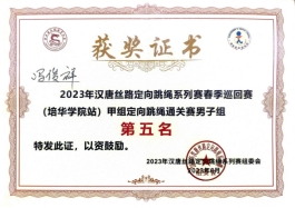 2023年6月,获得汉唐丝路定向跳绳系列春季巡回赛省级“第五名”