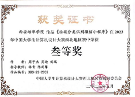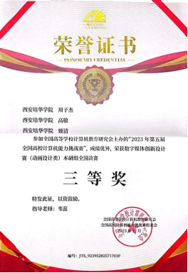 13.2023年5月,获中国大学生计算机设计大赛西北地区赛三等奖