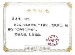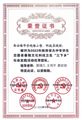 12.2023年6月,在2022年度西安培华学院“一站式”学生社区建设工作中被评为“抗疫先进个人”称号