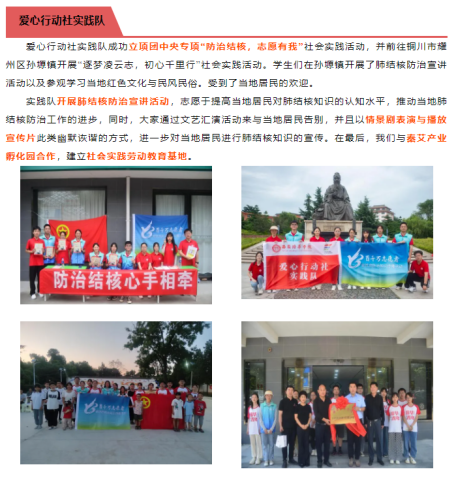 ——力行实践育人。学院紧密结合专业特色,积极推行“院领导+专任教师+学业导师+学生工作者”全员全方位全过程参与的实践育人模式,旨在为学生提供更广阔的实践平台,培养其创新精神和实践能力。学院每年组建覆盖千余人的各类社会实践团队,多年来已成功申报国家级、省级各类立项近百项,涵盖了科技创新、社会调研、扶老助残、关爱儿童、支农支教、志愿服务等多个领域。搭建大学生社会实践和劳动教育基地百余个,收到来自各级收到来自各级政府、事业单位出具的实践证明、感谢信共计千余封,这些宝贵的实践经验不仅丰富了学生的个人履历,也显著提升了他们的综合素质和就业竞争力,为他们未来的成长与发展奠定了坚实的基础。