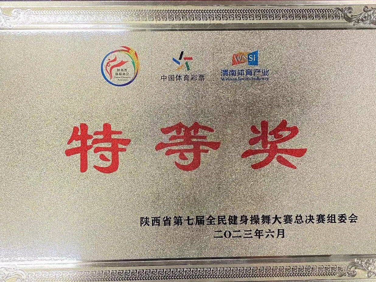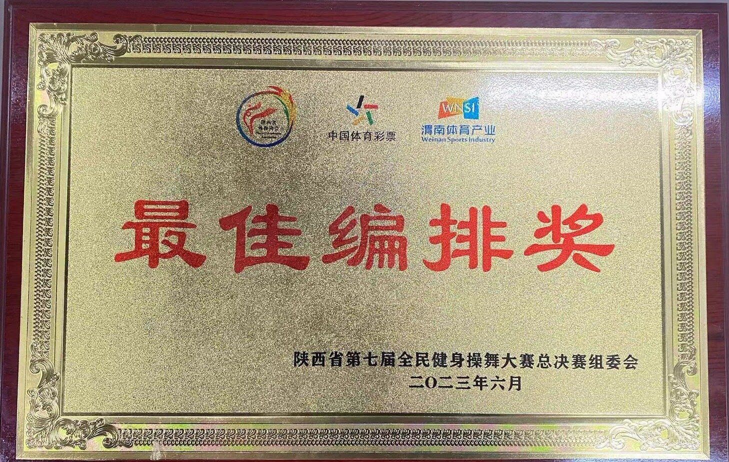 8.2023年6月获得陕西省第七届全民健身操舞大赛总决赛特等奖、最佳编排奖;
