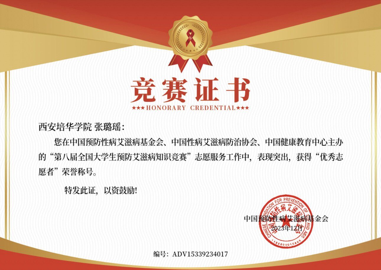 4.2023年12月获第八届全国大学生预防艾滋病知识竞赛优秀奖、优秀志愿者;