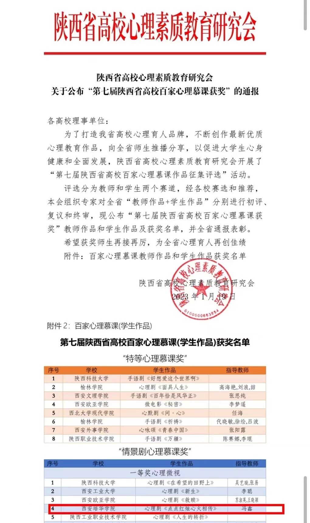 13.2023年1月获得陕西省第七届高校百家心理慕课一等奖;