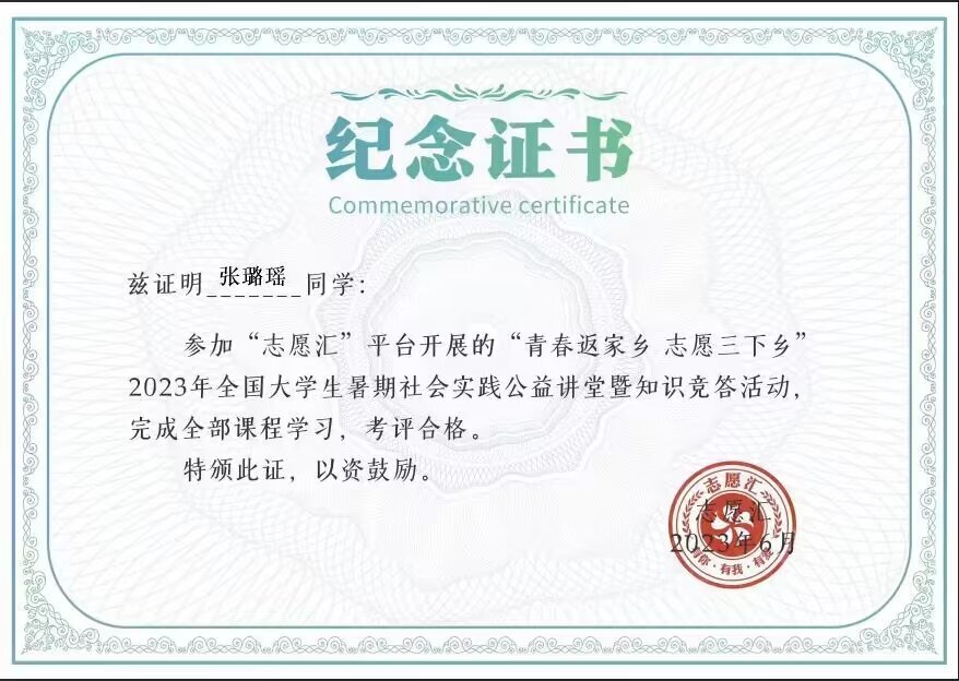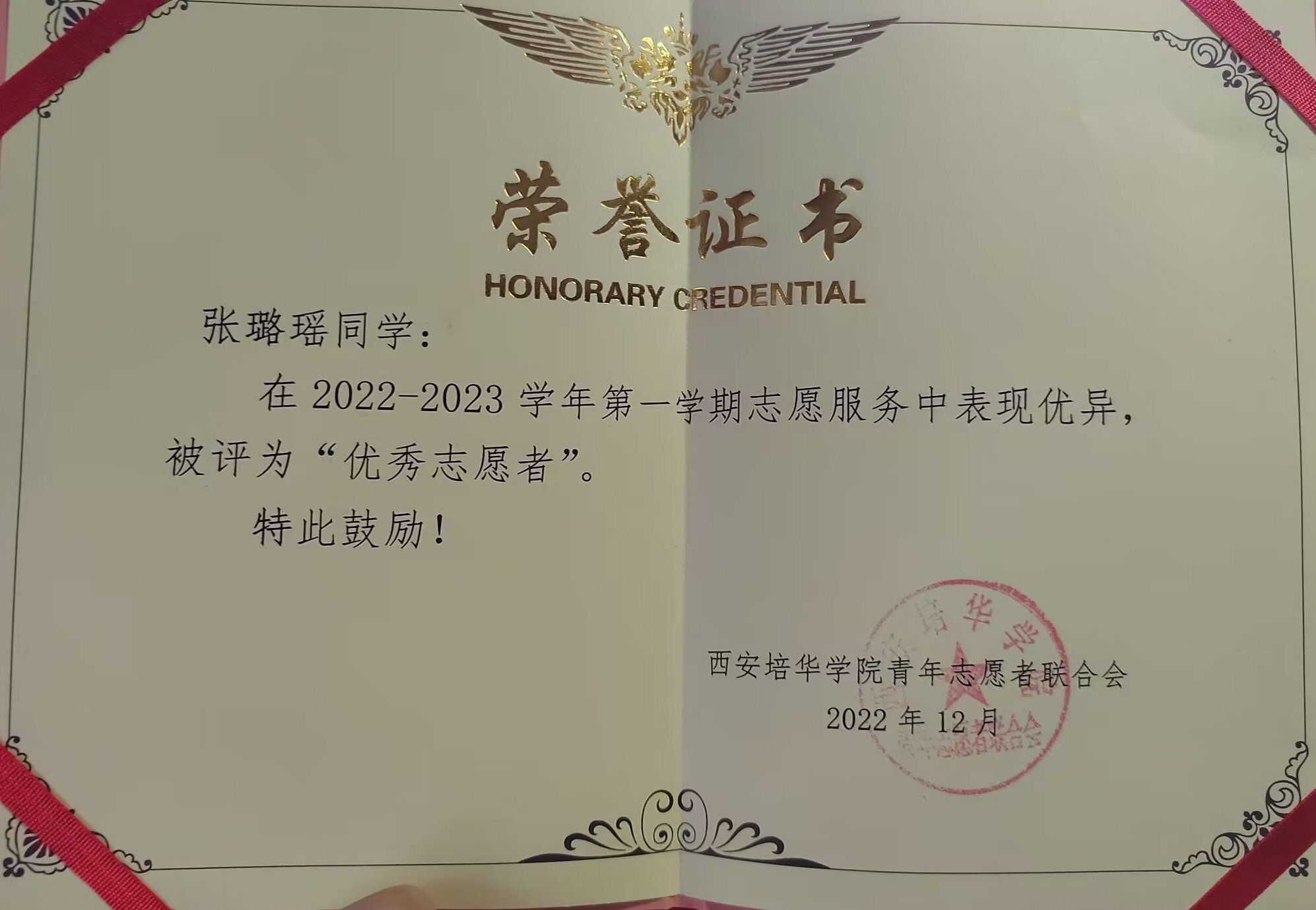 11.2023年5月获西安培华学院优秀共青团员荣誉称号;