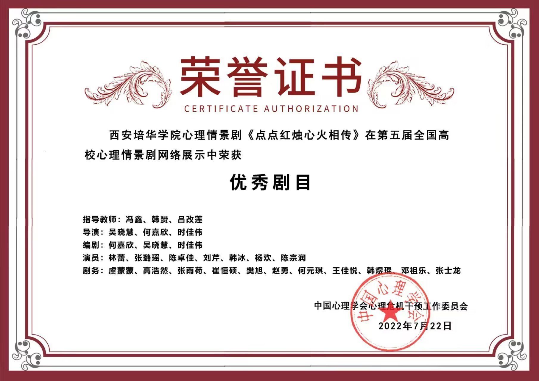 19.2022年7月获第五届全国高校心理情景剧优秀剧目;