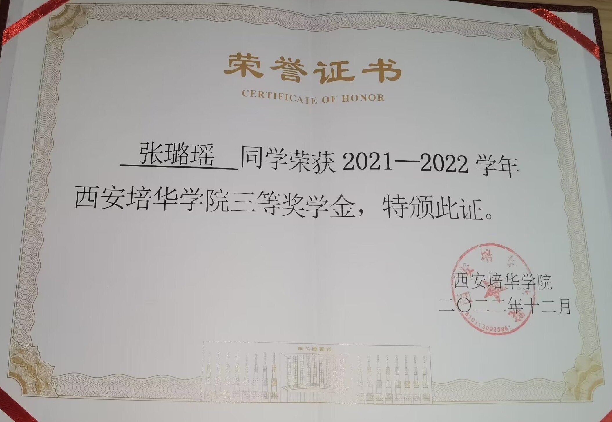 1.2024年5月获西安培华学院大学生年度人物荣誉称号;