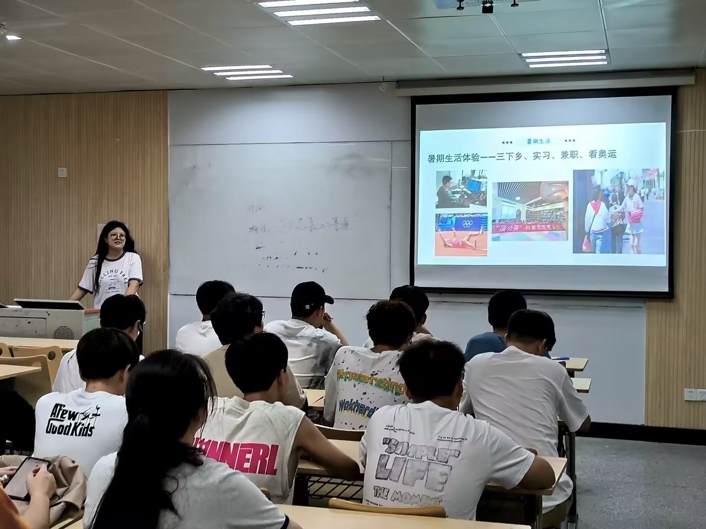 今年暑期,我校一大批学子以饱满的热情参与“三下乡”实践活动,通过走进乡土中国深处,助力乡村振兴,彰显了青春风采,贡献了青春力量,书写了中国式现代化挺膺担当的青春篇章。刚刚结束的巴黎奥运会,我国运动员一路过关斩将,总共收获了40金27银24铜,总计91枚奖牌,创下境外参加奥运会最佳成绩。奥运健儿们在赛场上挑战极限、突破自我,为了梦想而奋勇冲刺,他们的坚持和毅力让我们看到了人类的无限可能,那些激动人心的夺冠时刻,那些虽败犹荣的坚韧身影,每一个瞬间都值得铭记。各班辅导员们立足青年视野、焦点,通过亲身讲述、分享交流、朋辈对话等形式,进行课堂互动,同学们讲述了自己假期返家乡社会实践中增长本领阅历的青春故事,探讨了对巴黎奥运会的心灵感悟等等,师生在一起畅谈了家国情怀。