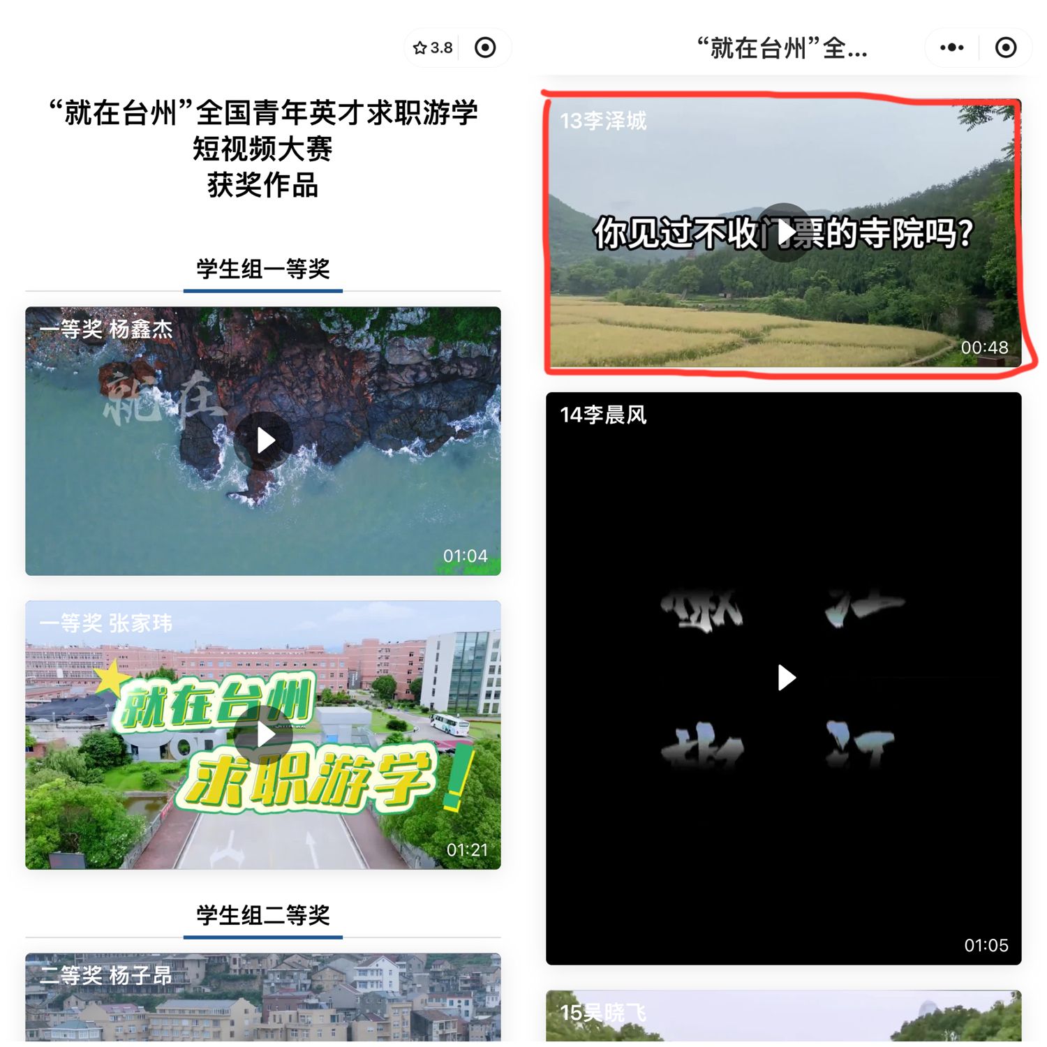 1.2024年10月获“就在台州”全国青年英才求职游学短视频大赛优秀奖;