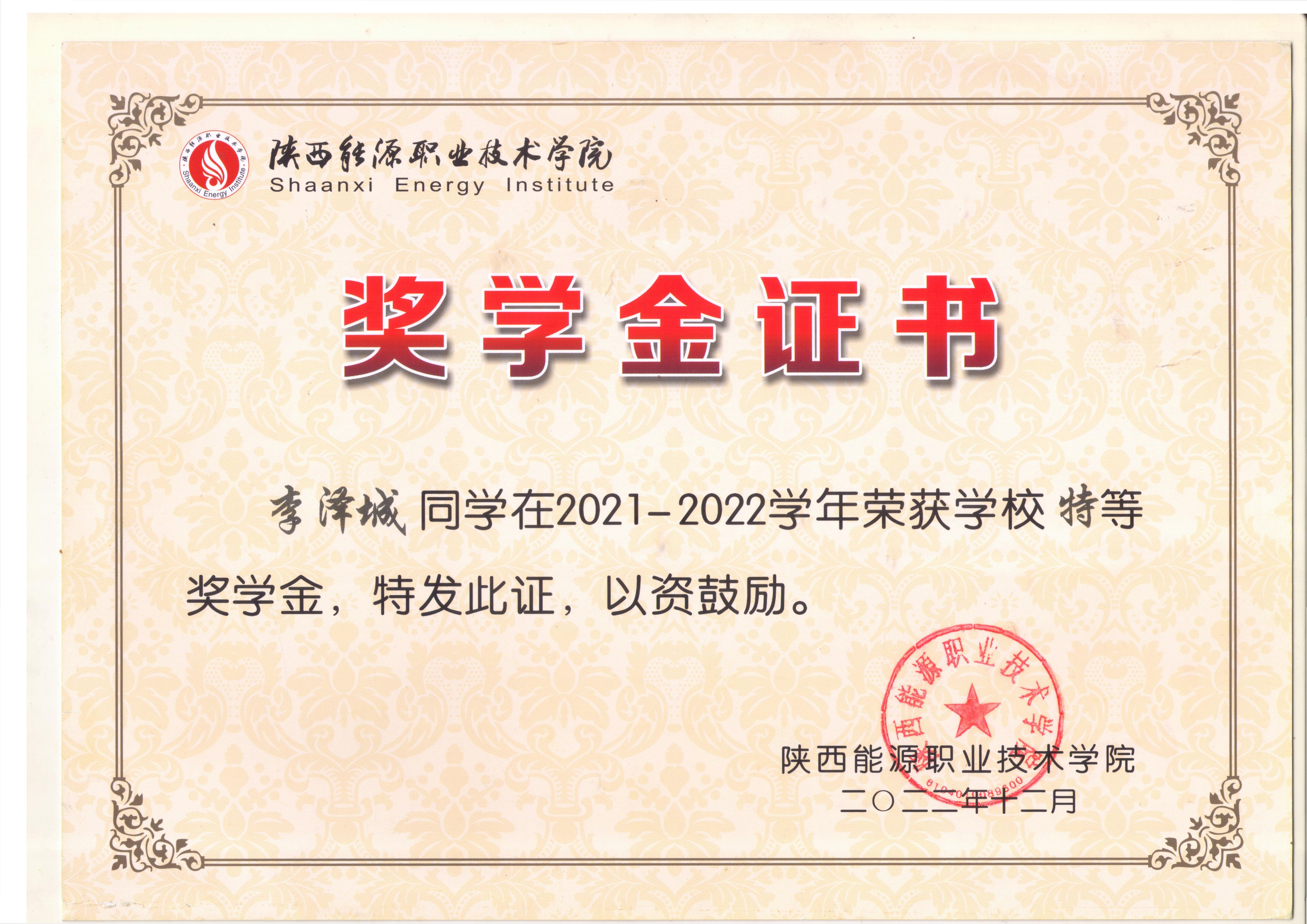 3.2022年12月获国家奖学金;