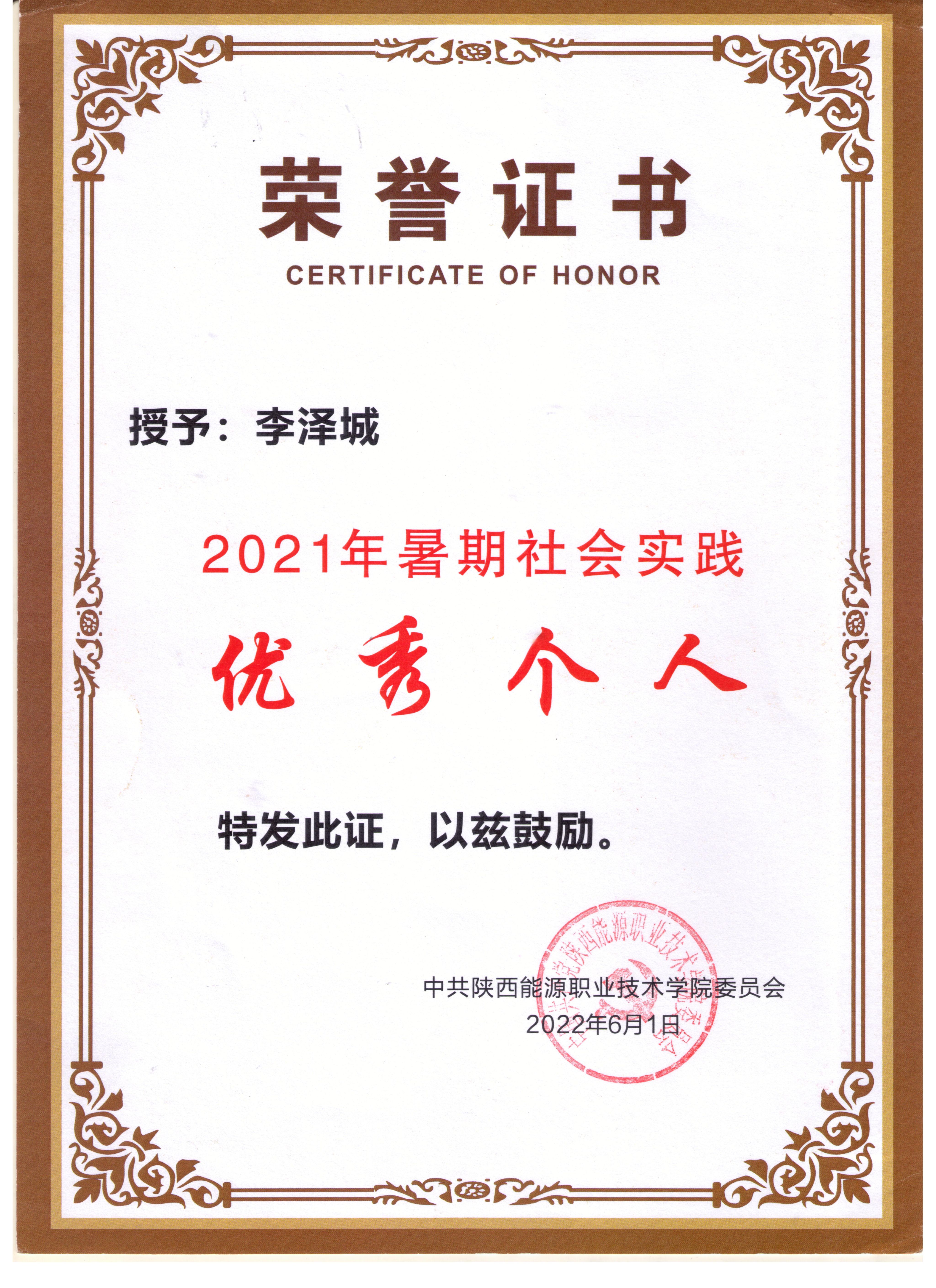1.2024年7月获西安培华学院优秀共产党员荣誉称号;