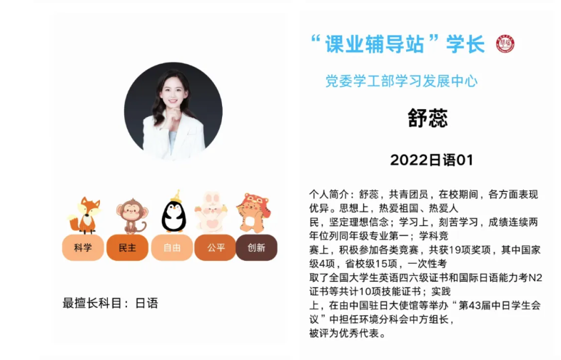 ●“课业辅导站”学长: