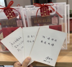 党委学工部为考研学子精心准备“成功上岸”暖心礼袋,每一份礼袋中都有校领导、各职能部门领导、二级学院院长手写的考研祝福贺卡,寄托着学校对考研学子们的亲切关怀和殷殷祝福;定制了“培华学子成功上岸”可口可乐,准备了逢考必过线圈本、未来可期笔和旗开得胜书签,期望同学们在考场上展现最出色的自己。