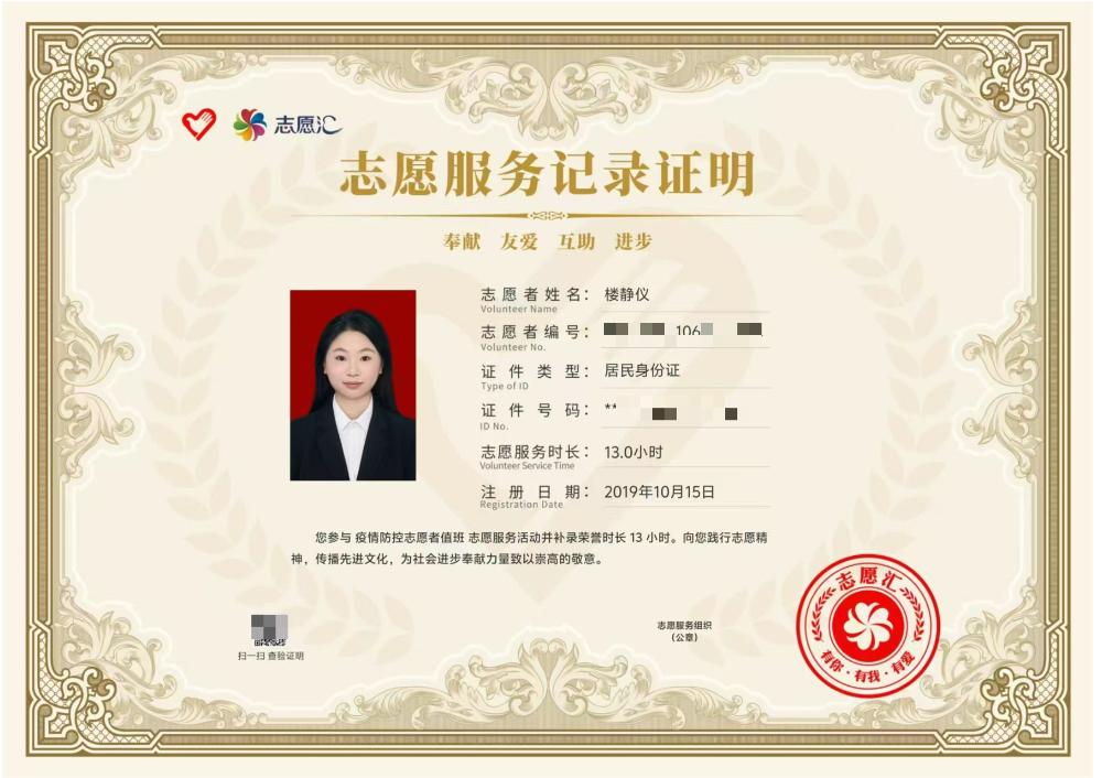 作为班级的权益委员,她负责班费的管理,作为学生组织的成员,她负责策划案的编写与校内其他组织的友好交流,同时,配合老师同学开展活动,累计协助组织活动20余次,活动累计参与人次达3000+。星星之火,汇聚成热情之光。在这个过程中,她获得了优秀干事,优秀部长,先进个人等荣誉称号,且遇到了许多志同道合的小伙伴们。她同他们一起脚踏实地,散发属于他们的青春实干奋斗之光。