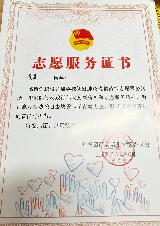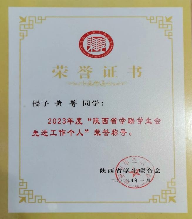 她严于律己,注重思想政治与理论学习,成为陕西省青马工程第十七期高校班学员,赴革命圣地延安开展红色教育和实践锻炼,她作为班级团支书,积极推进支部建设,组织开展团员青年主题教育,带领同学们以集中学习、小组研讨、读书分享会等形式进行专题学习活动6次,开展丰富多彩的主题团日活动和团课40余次,带领支部获评“五四红旗团支部”等荣誉。