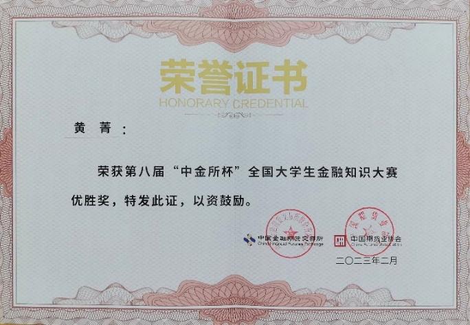 黄菁,女,汉族中共党员,会计与金融学院会计学本科生,现担任西安培华学院学生会执行主席、西安培华学院云梯青年宣讲团成员、会计与金融学院会计学专业代言人、会计学2102班团支书,曾获评“全国大学生自强之星”、 陕西省学联学生会先进工作个人、校三好学生、优秀共青团员、优秀共青团干、新时代好青年、大学生年度人物等荣誉称号。