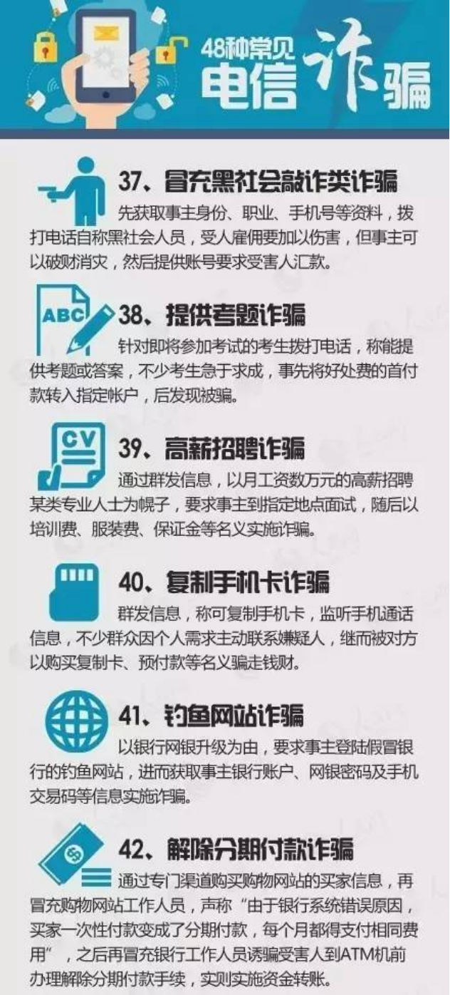 我们要牢记“6个一律”、“8个凡是”、“48种手段”!要捂紧口袋,让不法分子无可乘之机。