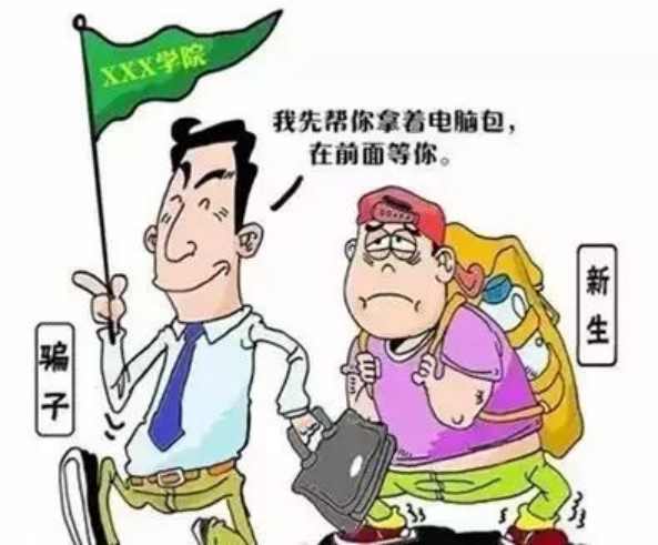 骗子“欺负”新生人生地不熟,在车站、学校门口冒充新生接待员,“热情”地帮忙看管皮箱等物品,再“调虎离山”,借机偷走行李。
