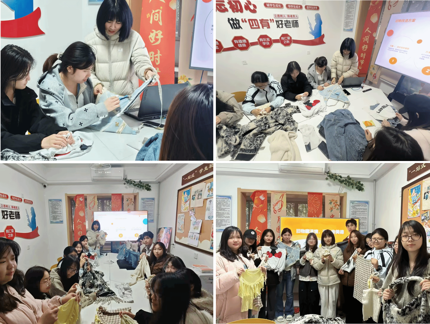 笃行社区学生发挥传媒专业设计与摄影特长,在社区开展旧物改造活动,赋予闲置旧物新的生命力,传递勤俭节约的雷锋精神。他们用镜头致敬校园守护者,定格校园劳动者的坚守与奉献。