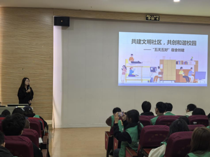 高老师以幽默风趣的方式为同学们讲述了各项示例,为各位学生社区骨干传授各项知识,为营造良好社区环境指引方向。最后,指出学生社区“三长”的责任,楼长要做当家人,引领社区文明建设。层长要做有心人,促进社区文明建设。舍长要做吹哨人,推进社区建设。本次培训进一步帮助同学们明确了学生社区“五无五好”创建标准与“三长”的工作职责,明确自身职责定位为更好服务同学奠定了基础,同时提升各个社区工作人员的综合能力,打造更加和谐、文明的社区环境。