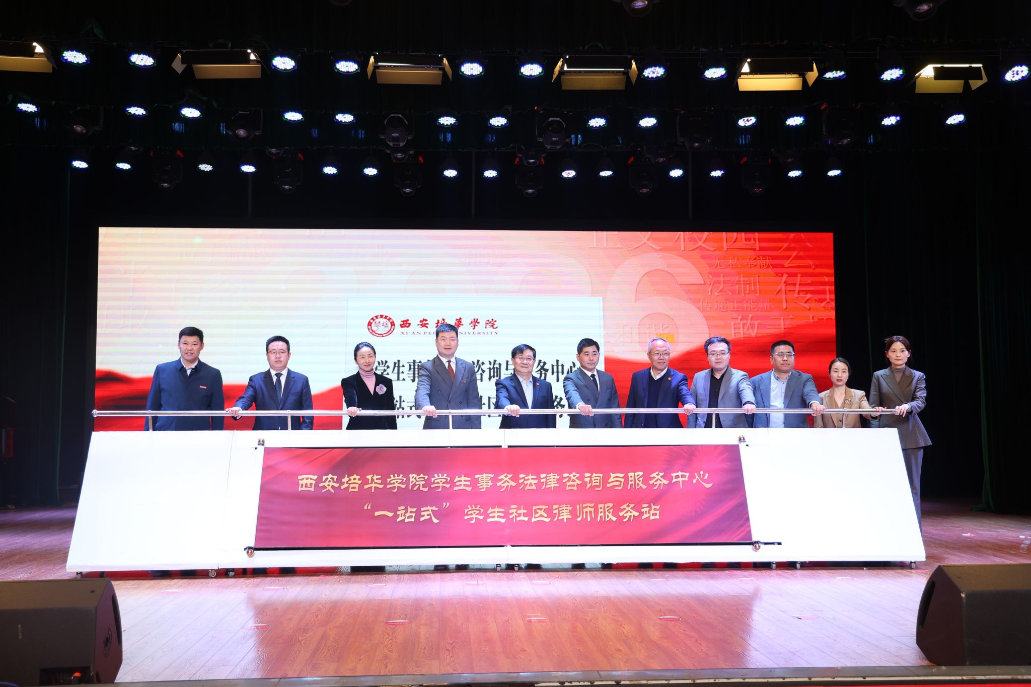 3月25日下午,西安培华学院“一站式”学生社区律师服务站(学生事务法律咨询与服务中心)揭牌与共建签约仪式在长安校区大学生活动中心顺利举行。在“九五普法”开局之年,作为学校在“一站式”学生社区法治服务领域的首次探索性实践,该律师服务站的成立,标志着学校在深化依法治校、深化“枫桥经验”、完善“一站式”学生社区综合服务体系、构建“校所协同”育人新格局上迈出关键一步,成为筑牢校园法治护航的重要屏障。