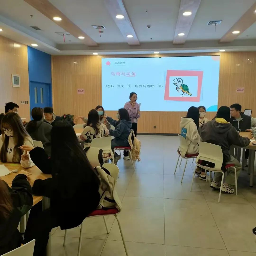 活动开始由潘潇老师进行“乌鸦和乌龟”的破冰活动,让大家更好的达到一个放松的状态,与本组的同学可以很好的交流。
