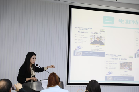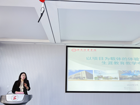 心理中心主任论坛中,韩赟主任以《以项目为载体的体验式教育在高校生涯教育教学中的应用》为主题,向与会高校分享了我校生涯教育的项目式体验教育特色。她谈到我校在全人教育理念背景下的生涯教育教学中,教师以促进学生生涯发展为目的,通过创设一系列生涯情境和项目活动,激发学生探索欲、优化学生体验感。体验式生涯教育重点凸显学生的主体地位,让学生亲身参与到各种生涯探究活动中,通过沉浸式体验互动,内化觉醒、加深自我认知、了解外部信息、做出生涯决策、提升自己各方面的能力,为实现自我发展与终身发展种下了坚实的生涯种子。