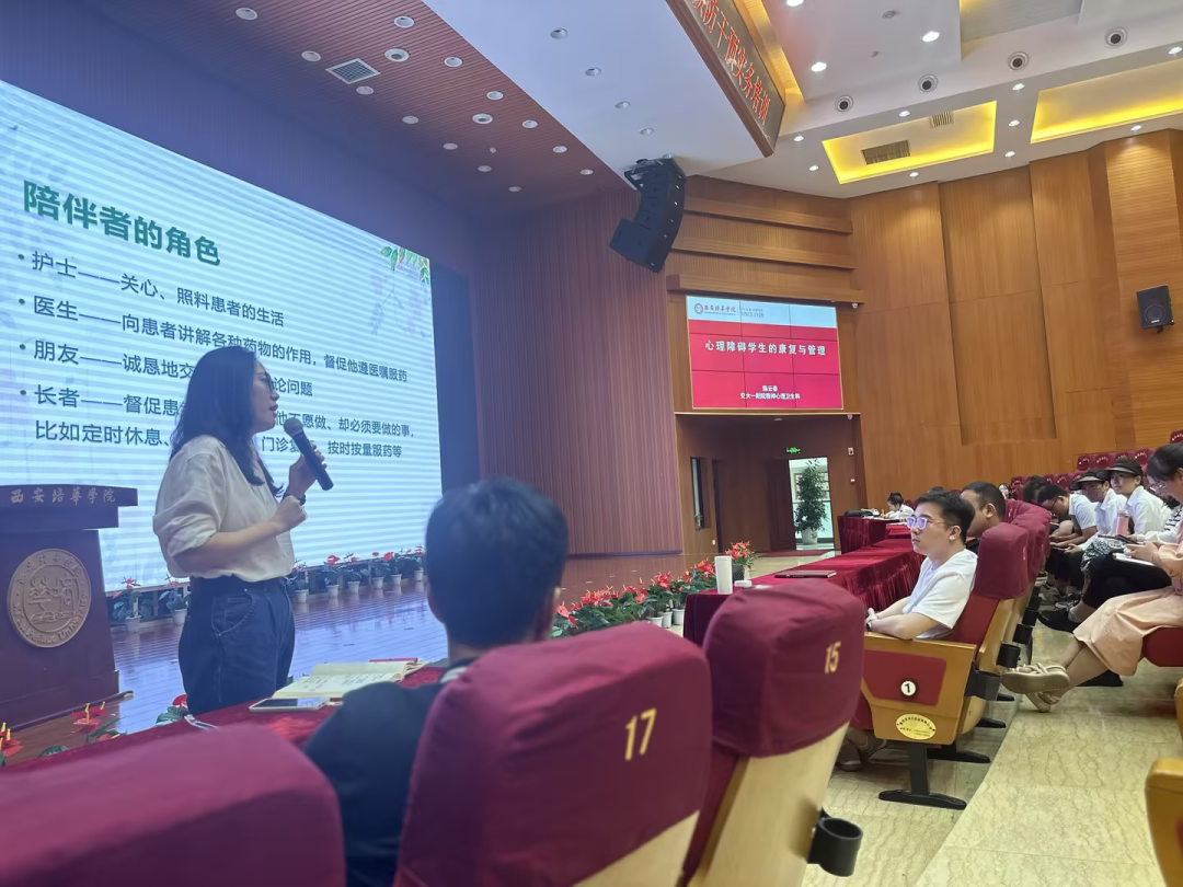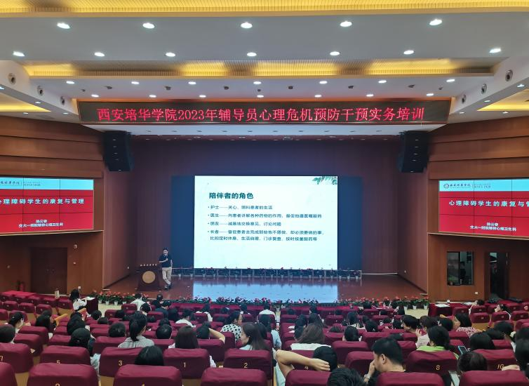 本次培训会特邀交大一附院精神心理卫生科主任陈云春教授于2023年9月15日14:30在校图书馆报告厅就《心理障碍学生的治疗和后期干预》做了专题培训,培训由韩赟主任主持,学生潜能发展中心主任韩赟、全体辅导员及学生潜能发展中心等百余名老师参加了培训。