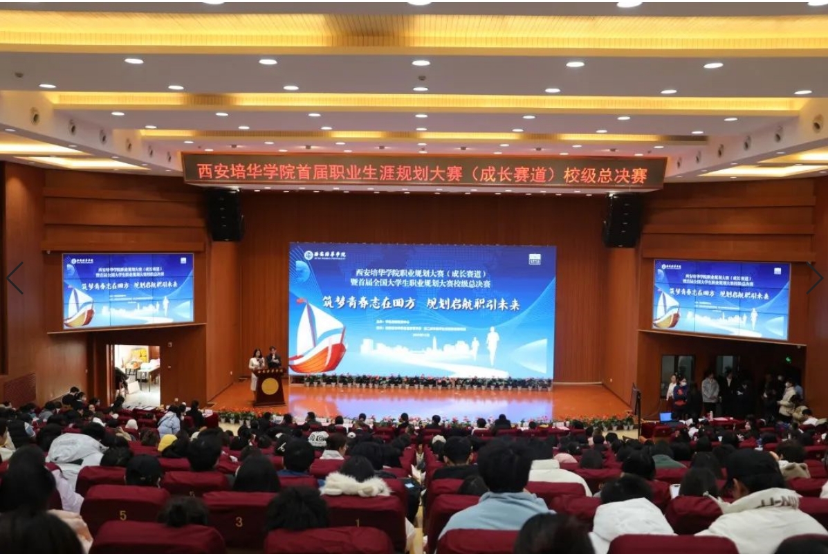 西安培华学院职业规划大赛(成长赛道) 暨首届全国大学生职业规划大赛校级总决赛于12月20日在维之图书馆报告厅顺利举行。本次大赛由学生潜能发展中心、眼界生涯工作室主办,陕西省青年联合会教育界别、各二级学院学生潜能发展辅导站协办。大赛的举办旨在以赛促学、以赛促教、以赛促就,帮助学生明确职业发展方向,树立正确成才观、职业观和就业观。