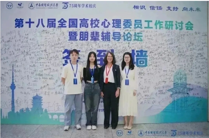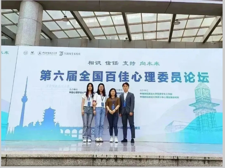 10月31日一11月3日,第十八届全国高校心理委员工作研讨会暨朋辈心理辅导工作论坛在中南财经政法大学举行。本次研讨会由中国心理学会心理危机干预工作委员会、全国高校心理委员研究协作组主办,来自全国近900名专家学者、师生代表齐聚一堂,其中心理委员近400名。我校学生潜能发展中心吕改莲老师、人文与国际教育学院冯窦菲老师,及我校体育学院高浩然、智能科学与信息工程学院肖雨两位学生作为心理委员代表参加了本次会议。