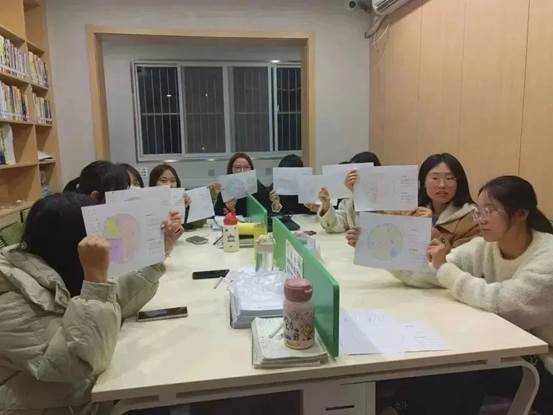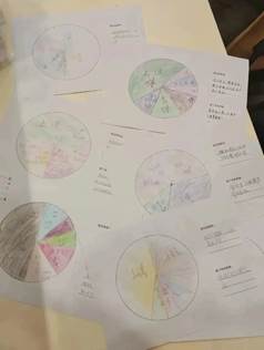 本次活动以绘制“时间馅饼”为主题进行。在绘制的过程中,同学们对自己每日的生活进行反思与总结:我的时间去哪了?我如何管理自己的时间?接下来如何提升自己工作学习效率?