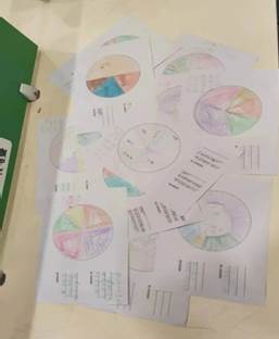 在朋辈互助团队的引导下,现场参与的同学开始绘制自己的时间馅饼。绘制完成后,同学们看见自己的时间馅饼感慨万千,具象化的展示,引起同学们的共鸣和反思。