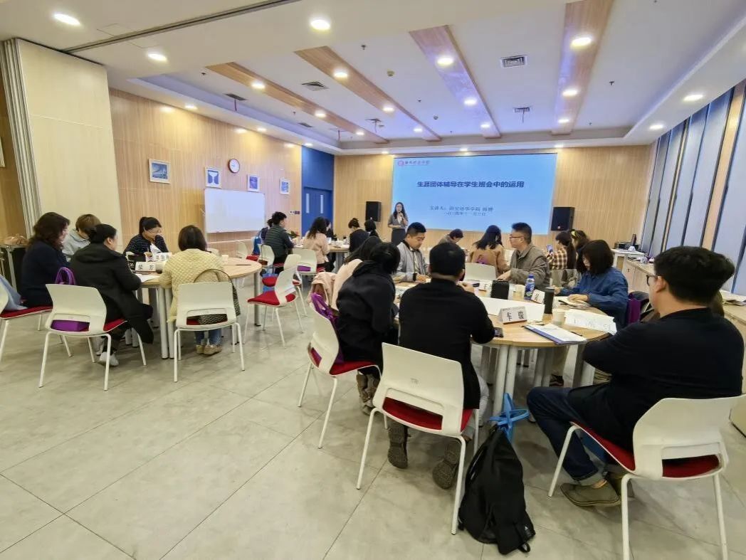 韩赟老师的讲授则让参会教师深刻体会到生涯团体辅导在帮助学生认识自我、探索生涯规划未来等领域的重要功能。她分别从团体启动、设计和示范课等方面介绍了生涯团体辅导的实施过程和达成效果。通过韩赟老师的生动讲解和案例分享,参会教师不仅深刻理解生涯团体辅导的理念和方法,还收获了大量实用的教学技巧和策略。
