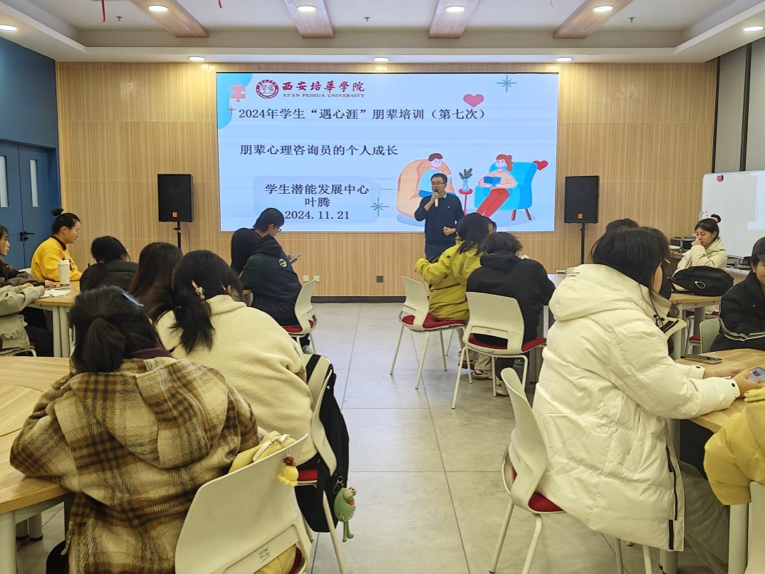 2024年11月21日晚18点30,朋辈特训营主题七《朋辈心理咨询员的个人成长》,由学生潜能发展中心叶腾老师主讲。