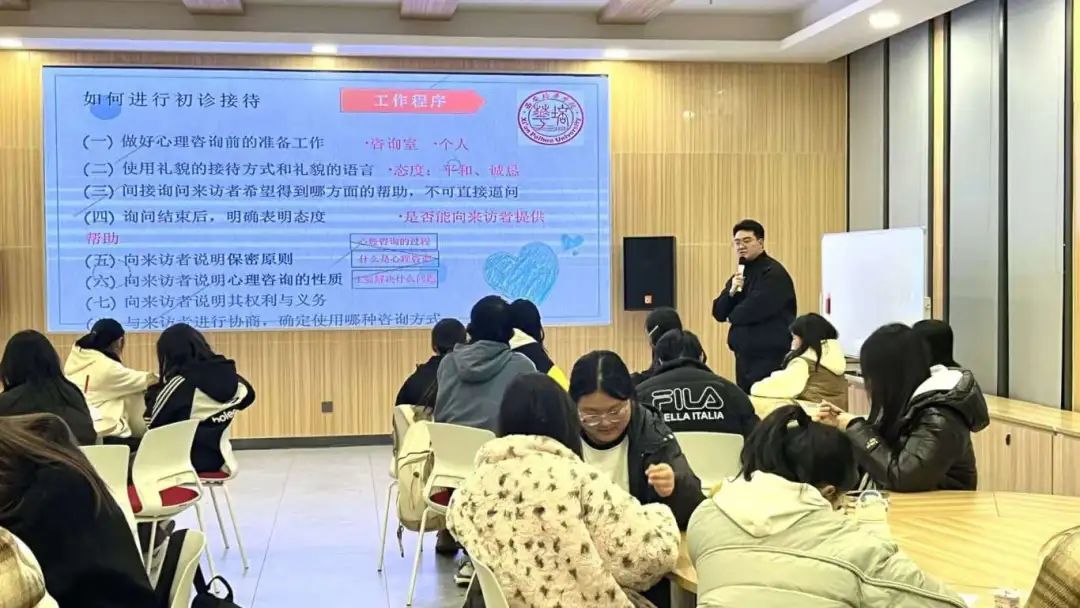 随着内容的深入,陈老师更加细致地讲述了身为一名咨询师、一名朋辈心理咨询员,关于心理咨询中首次接待来访者的程序、原则和技术要领,帮助大家掌握接待的准备工作、基本礼仪、专业态度和会谈技巧;强调心理咨询初诊接待不单是为了收集整理材料以及进行诊断,通过举例医患关系、人际关系等,使朋辈心理咨询员重视建立良好咨访关系、情感深度联结的重要性;培训中通过让学员模拟心理咨询初诊接待,体验其中的过程,分析其中的问题,以及观看了心理咨询初诊接待过程的视频,通过正确的示范促进理解学习,加深对培训内容的内化。