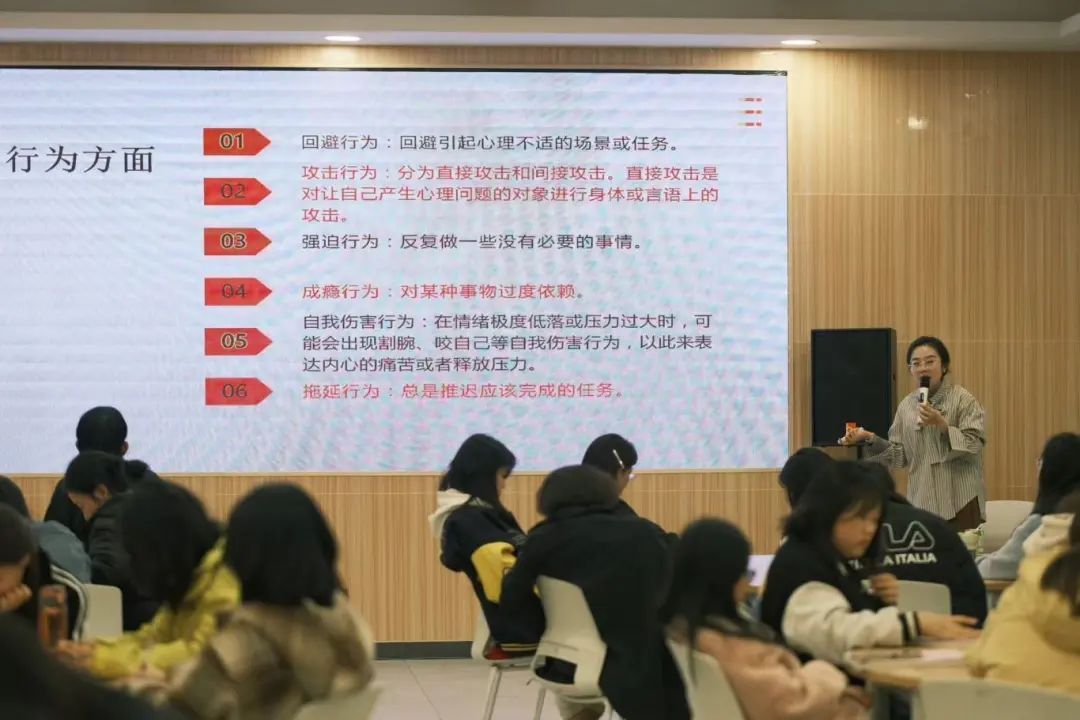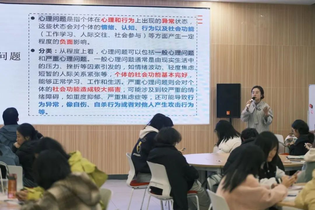 为了使朋辈心理咨询员学会常见心理问题的识别及其对策运用技能,在咨询中更好的发挥朋辈力量,提升朋辈心理咨询员的专业素养,学生潜能发展中心专职教师王琳琳11月18日晚20点为朋辈心理咨询员系统讲授了《大学生常见心理问题的成因及对策》课程,朋辈心理咨询员以饱满的热情投入了本课的学习中,课程效果显著,本讲的培训内容一共分为六个部分,各部分内容在问题理及讲解上由浅入深、环环相扣。