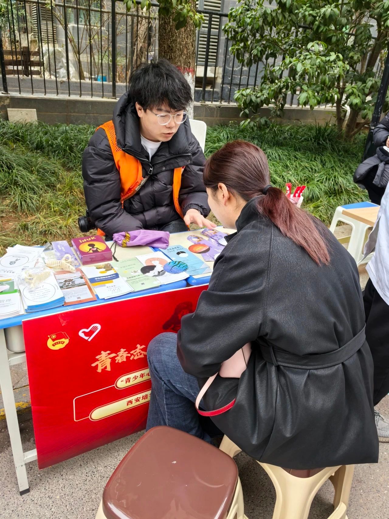 本次志愿服务,遇心涯学生互助工作委员会朋辈咨询团队3人在指导老师王旭的带领下,开展“青少年心理关怀”朋辈心理咨询服务。在活动现场,朋辈咨询员主动走向现场居民群众,宣传人人关注心理健康,人人做自己身心健康的第一责任人的理念,并向他们发放学生潜能发展中心制作的心理健康科普手册。同时,志愿师生以卡牌为媒介,耐心倾听,适度反馈,引导来访居民情绪情感表达,帮助建立积极、乐观、向上的生活态度。