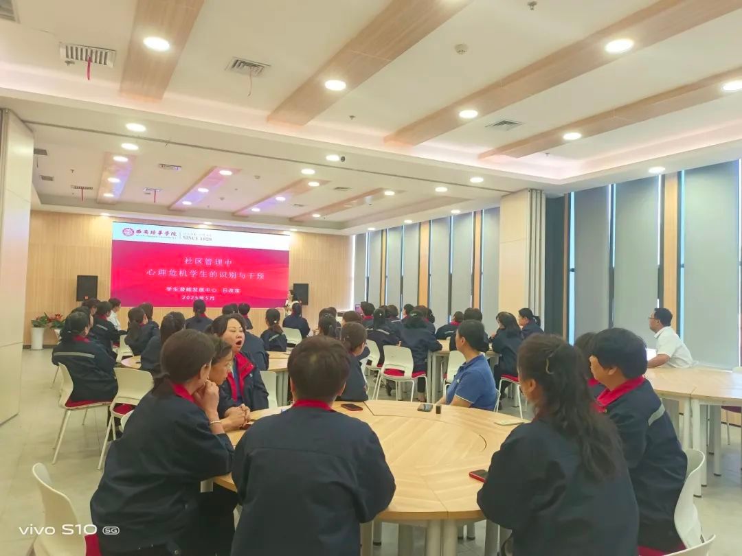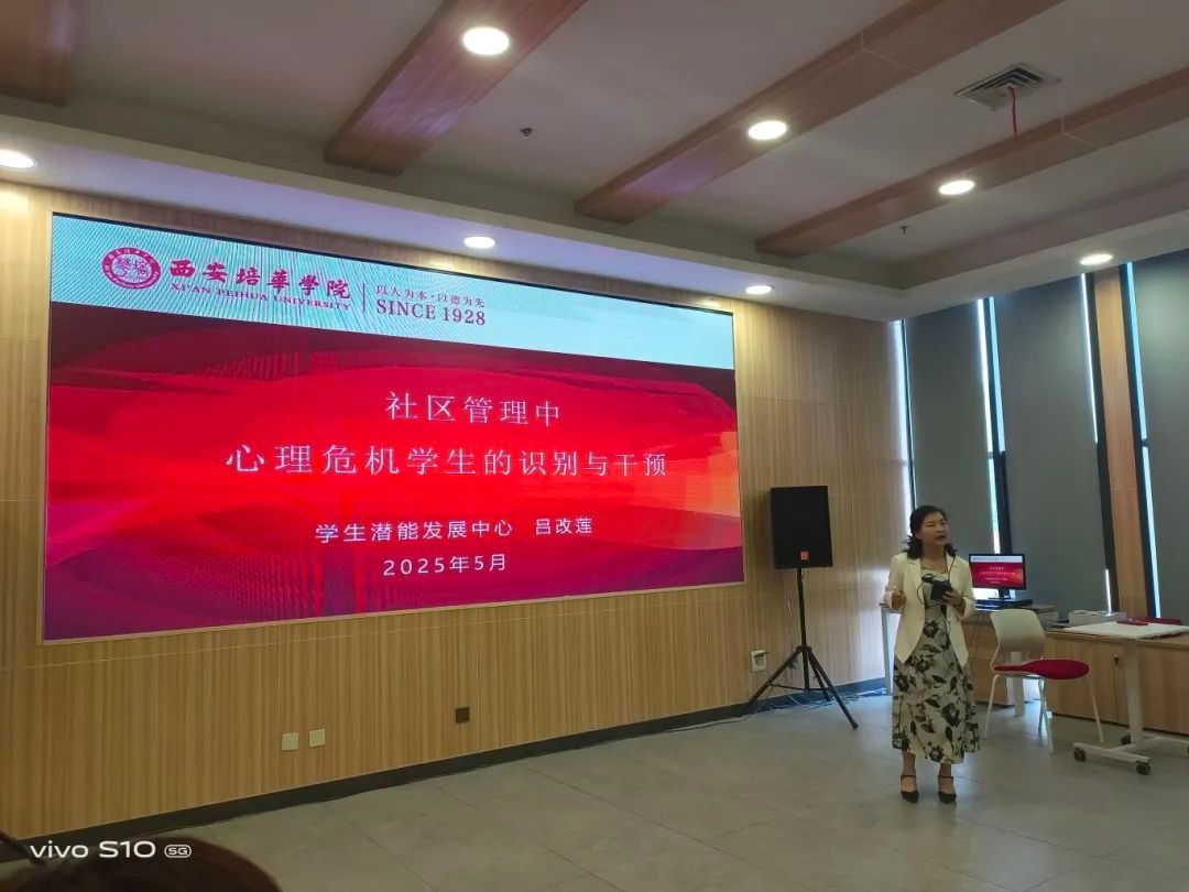 为进一步加强校园心理健康教育工作,提升社区生活老师对学生心理危机的识别与干预能力,构建全方位、多层次的心理健康防护体系,2025年5月15日上午8时,学生潜能发展中心在后勤服务中心的积极配合下,组织开展了《社区管理中的学生心理危机识别与干预》专题培训,培训由学生潜能发展中心吕改莲老师主讲,来自全校各社区的50余名生活老师参与了此次培训。
