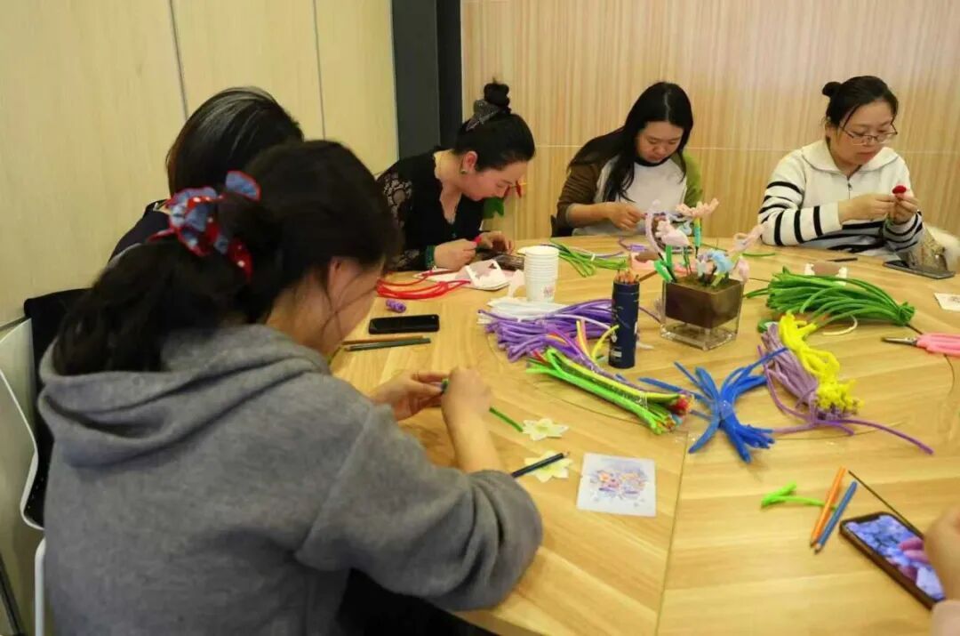 艺术疗愈活动中,老师们运用扭扭棒自由创作专属手工花。没有标准、不追完美,大家专注指尖创作,将情绪与期许融入作品,一朵朵独一无二的扭扭花次第绽放。然后,老师们就创作感受与活动心得进行分享,现场氛围真诚包容。