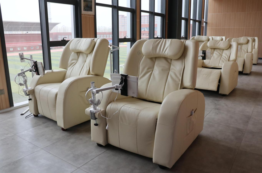 多功能训练反馈室:由多功能放松椅、数字控制器、生物反馈及心身放松训练系统、360度旋转支架,平板电脑等组成,采用生物反馈训练方法,改善自主神经平衡性,提升心理素质、自主释压能力,提升专注力等。
