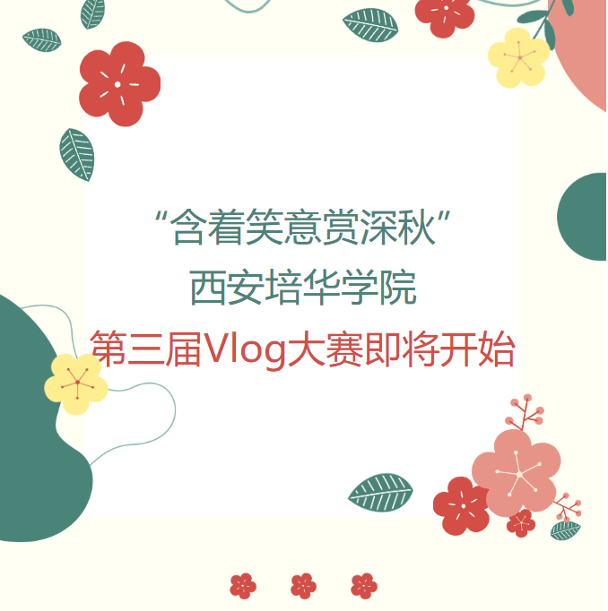 为丰富课余活动,促进同学们的身心健康发展,满足学生生活多元化、个性化的需求,学生潜能发展中心面向全校同学开展第三届Vlog大赛"含着笑意赏深秋"活动。